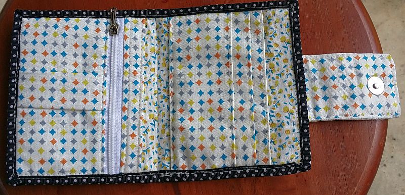 Well, I’ve given myself too much of a seam allowance and the wallet turn out to be a bit bigger than normal fold up wallet. Anyhow, I like the combination of the fabric pattern, it looks fun to me.