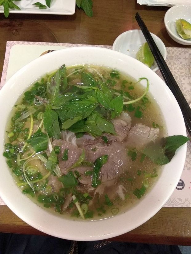 Vietname Pho with lots of herbs and bean sprout