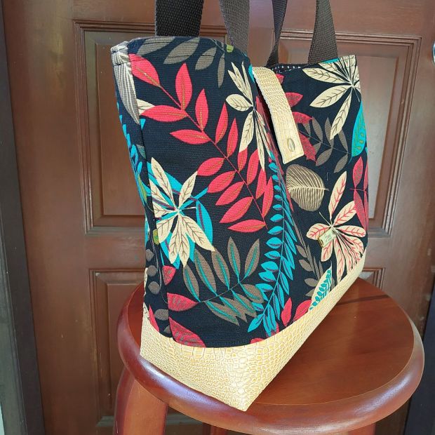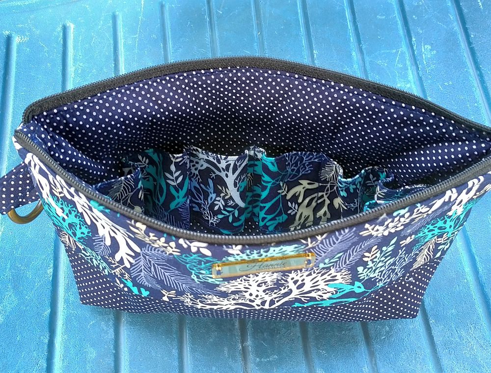 I tried to use different fabric in one pouch. It is not showing in the picture above, there are actually with PU leather bottom.