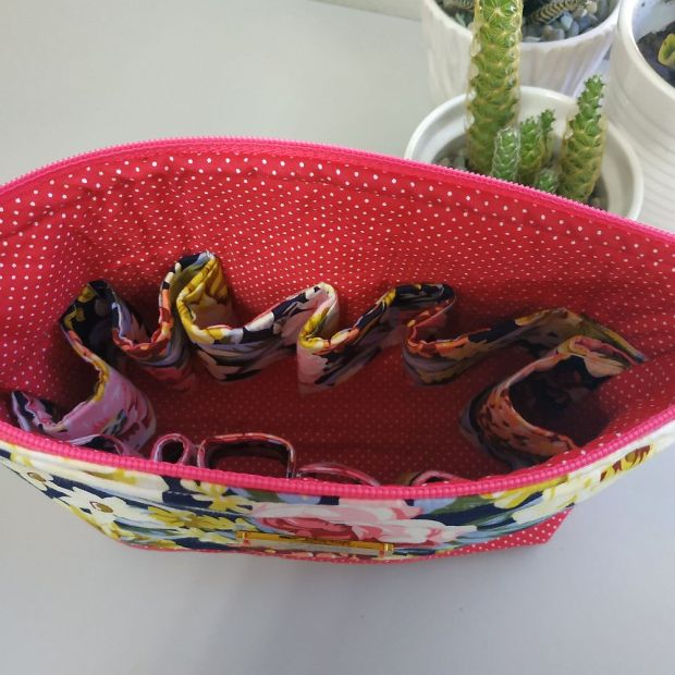 One is a make-up pouch which can also serve as a pouch to store essential oils in the size of 5ml bottles. I’ve made 12 slots all in all. So this pouch is actually being used to house almost all the small items in her handbag.