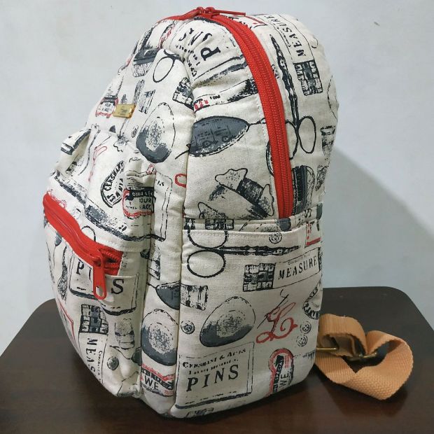 Next is a mini backpack that I’ve tried. Pattern from Sew So Easy. I’ve altered the side and bottom of the backpack.
